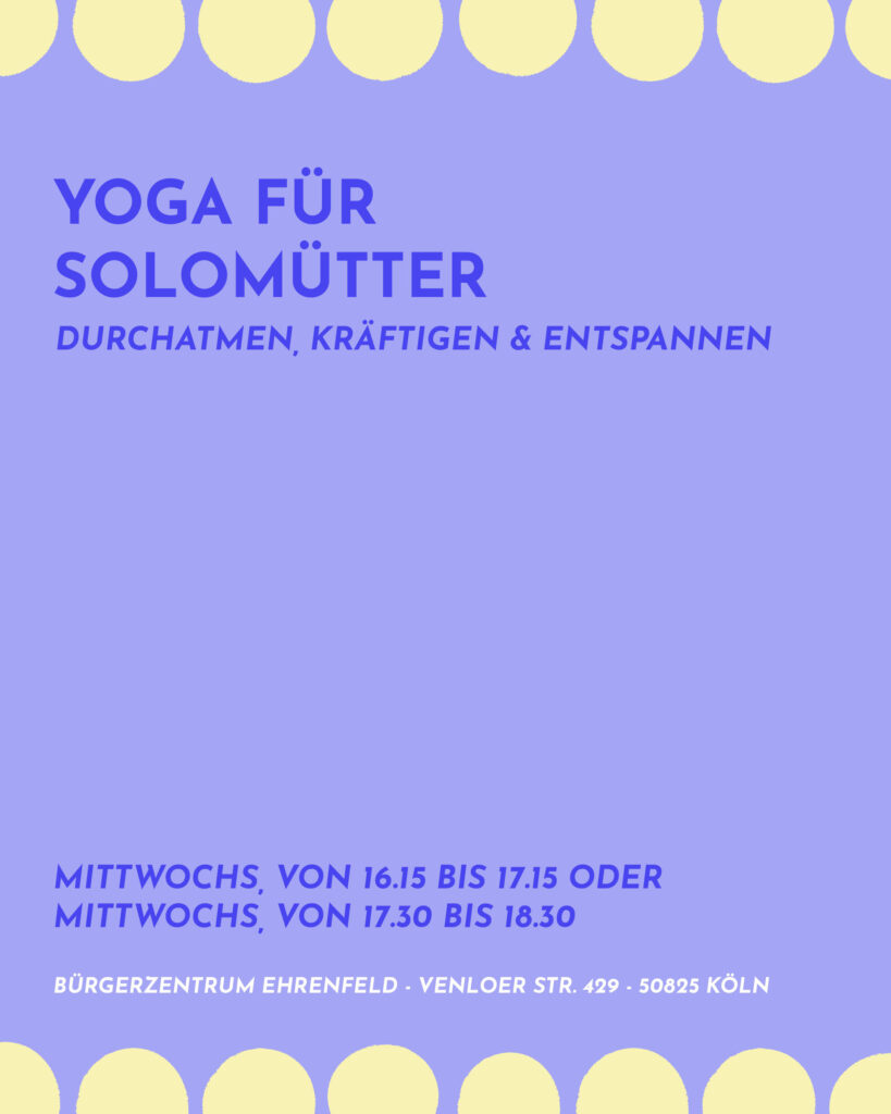 Seit März 2024 gibt es im Bürgerzentrum Ehrenfeld (BüzE) das Solomütter*-Projekt: ein Treffpunkt für Solomütter und Personen, die in Erwägung ziehen Familie auch Partner*in zu gründen. In der „Mini-Mäuse-Piste“ des BüzE findet ein monatlicher Austausch in kindgerechter Umgebung statt.